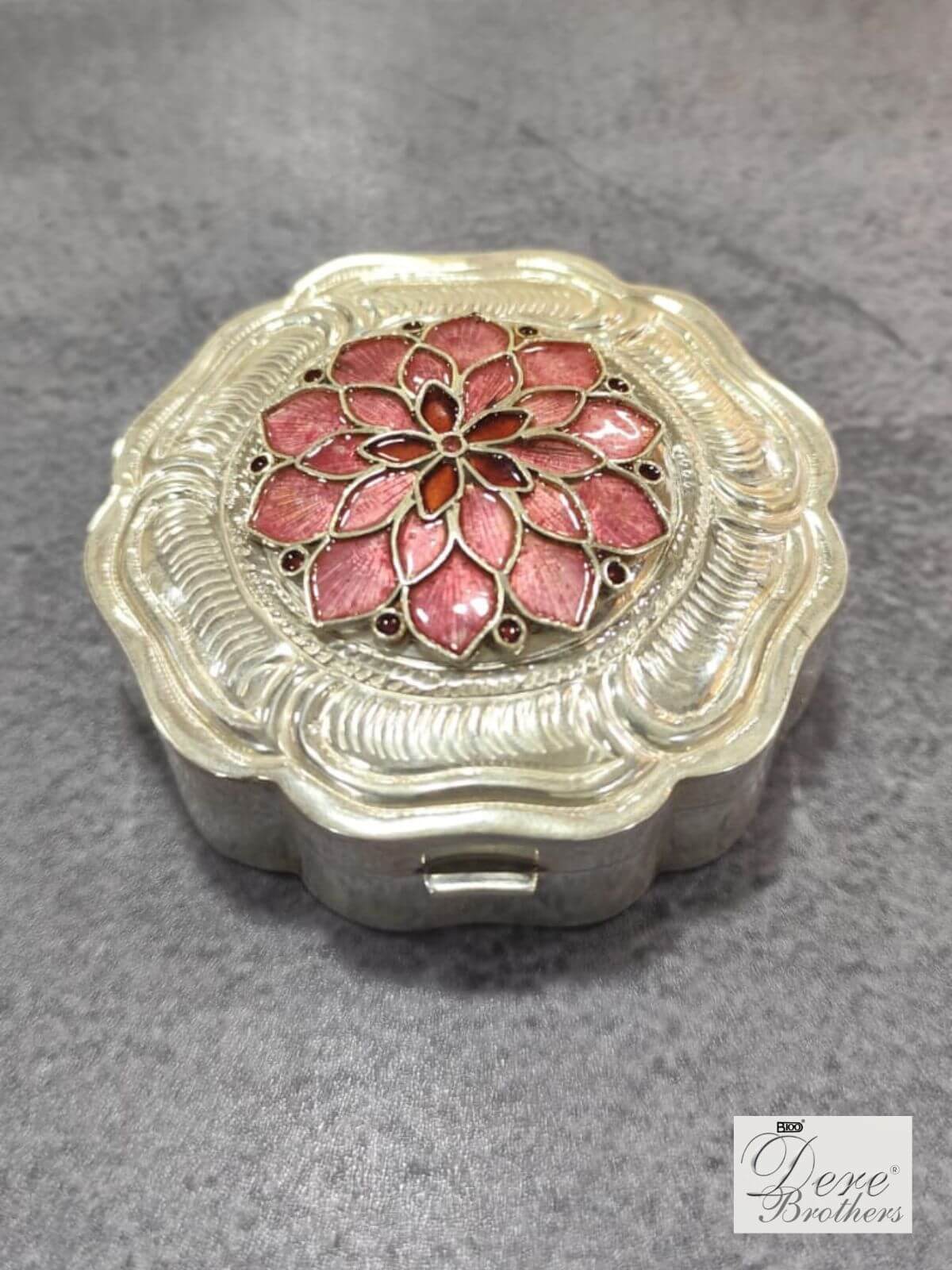 Flower Nakshi Shaped Box with Blue Flower Meena