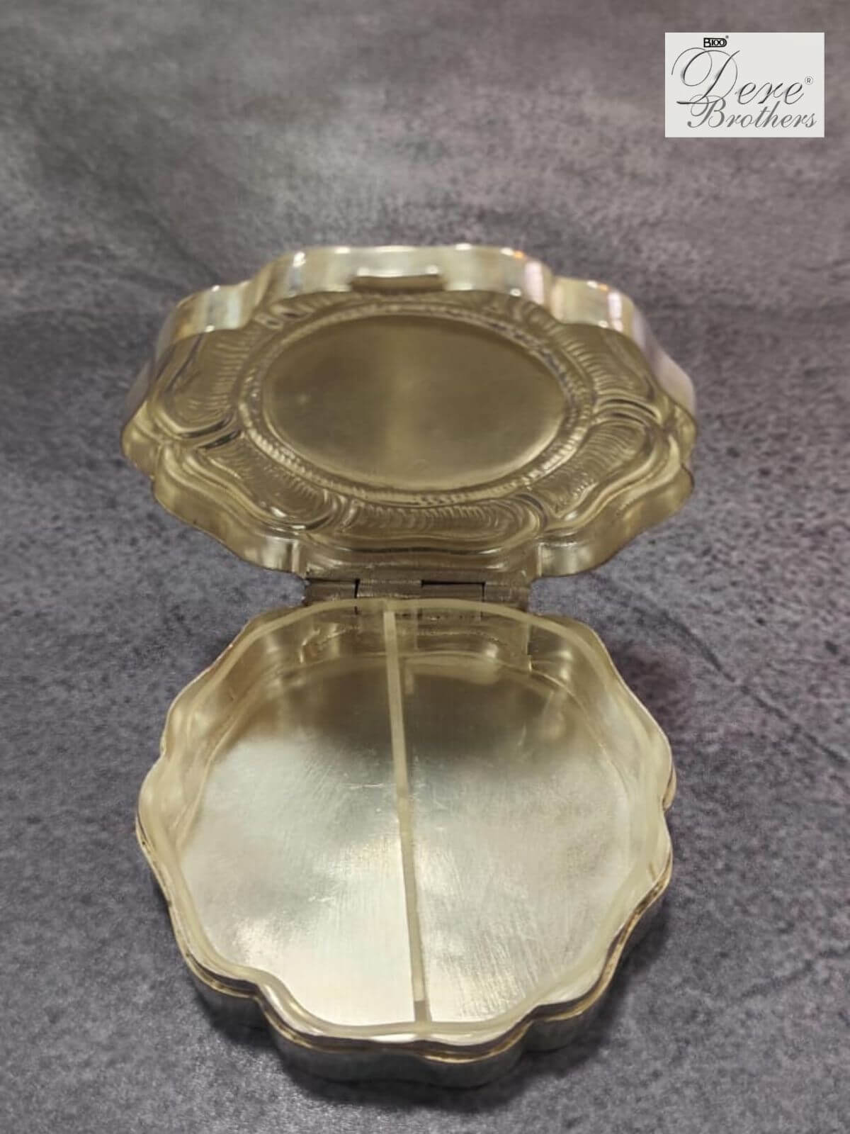 Blue Flower Meena/ enamel.The addition of blue enamel (Meenakari) enhances the visual appeal of the box, providing vibrant and colorful accents.